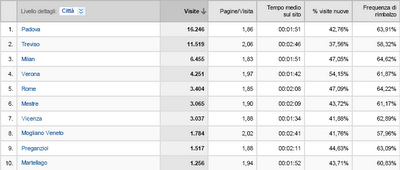 Analizzando i Comuni di provenienza dei lettori si nota qualche stranezza, dopo Padova e Treviso al terzo posto la città di Milano (?), seguita da Verona e Roma (??), questo probabilmente è dovuto al gran numero di praticanti che hanno quelle città non Venete.