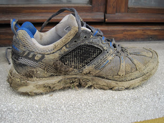 Una dozzina di kilometri collinari con qualche salita bella tosta, boschi da respirare a pieni polmoni pieni dei 1000 profumi di questa umida primavera (per fortuna la pioggia ci ha risparmiato), guadi di torrenti, fango in abbondanza (con scarpe a testimonianza), attraversamento all'interno di un antro nella roccia, e passaggi suggestivi all'interno di alcune cantine della zona, in mezzo alle alte botti.