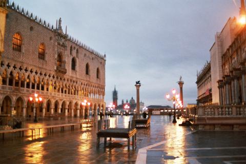 Se invece avrò ulteriori intoppi ... parteciperò ugualmente, il passaggio in Piazza San Marco dovrei godermelo comunque prima che accendano le luci (come in foto), mentre sarà "un po'" difficile godermi il refrigerio dei piedi a mollo, con inerente spettacolo visivo, visto che il massimo di marea quel giorno è previsto attorno a mezzogiorno.