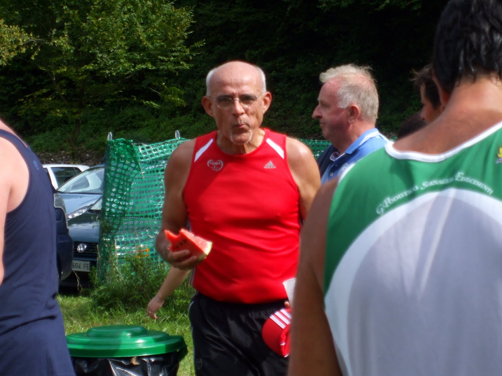 In queste gare montane il: "ma chi me lo fa fare" non mi passa minimamente nei pensieri, so bene che qualche soddisfazione la trovo sempre, a cominciare dall'ossigeno respirato a pieni polmoni sul Col di Dante (non il sommo poeta ma il nome dell'ultimo abitante di quel luogo), continuando con nelle orecchie il gorgogliare del torrente Tegorzo, proseguendo ecco il vero ristoro regalato da una fontana con il suo getto di pura acqua gelida, ed alla fine, subito dopo la sudata, l'immancabile anguria.