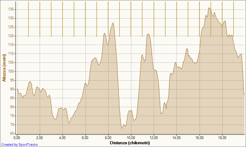Volendo proprio andare a cercare il pelo ecco un paio di osservazioni, una sulle strade non "sigillate" alle auto (qualcuna ce la siamo ritrovata in mezzo); un'altra sui 20,4km dati dal GPS al posto dei 21, però in più c'è da aggiungere il continuo saliscenti che il GPS annota come piano.
