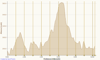 Continui saliscendi non durissimi, che mi hanno divertito non tirandoli a morte; non fatevi imbrogliare dall'immagine, il dislivello della salita più lunga è solo di un centinaio di metri distribuiti in 1 kilometro.