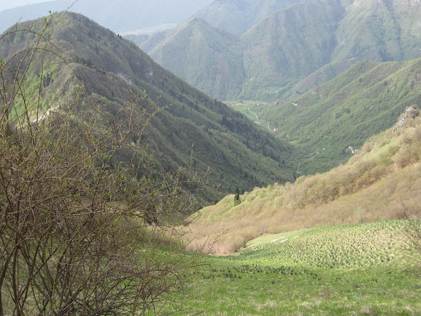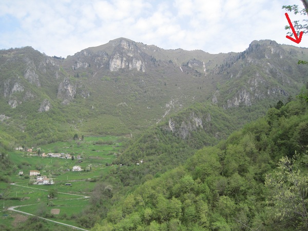 Non me la sono sentita di proseguire oltre, il cielo si è annuvolato ed è sceso qualche chicco di grandine, prima di tutto la sicurezza, comunque ... ecco la foto di prima scattata dal lato opposto, giù in basso la strada che sale a Prada: